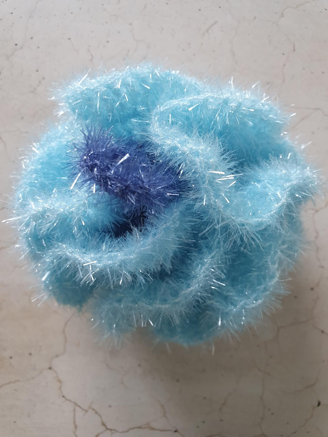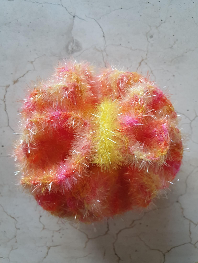 Er ist ein Unikat und aus Bubble Garn, 100 % Polyester gehäkelt.