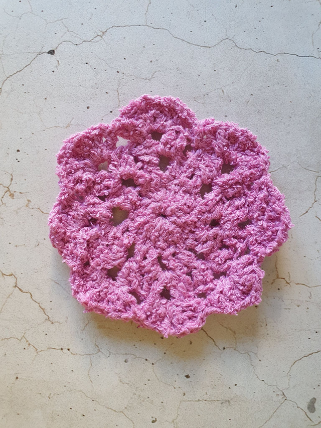 Es sind Unikate und aus Woolly Hugs Frottee, 100 % Baumwolle, gehäkelt.