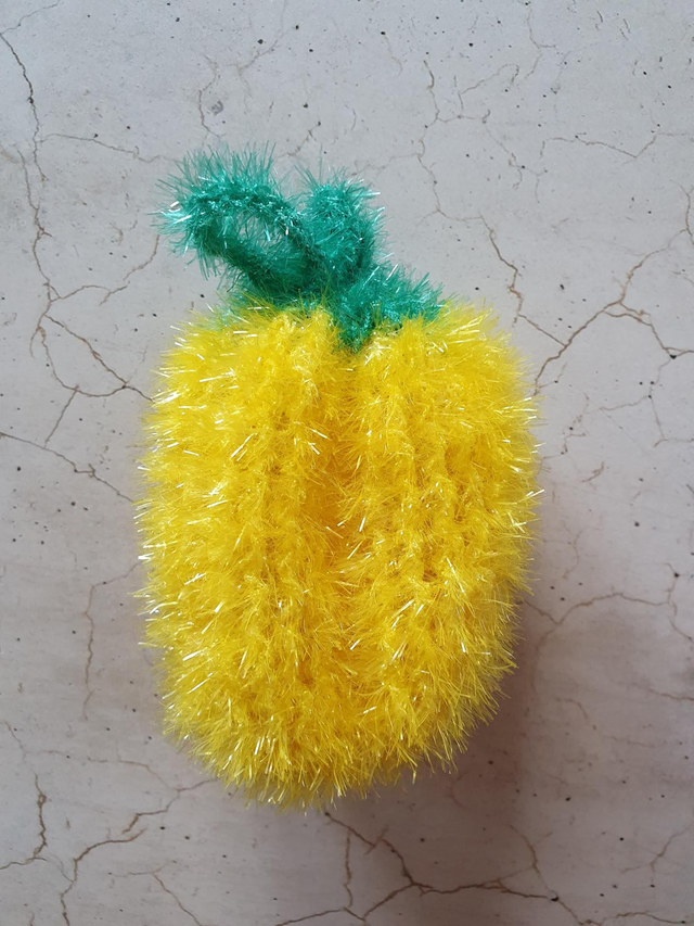 Diese Unikate wurden gehäkelt: die Topflappen aus Tissa Garn von Lang, 100 % Baumwolle und der Schwamm aus Bubble Garn, 100 % Polyester