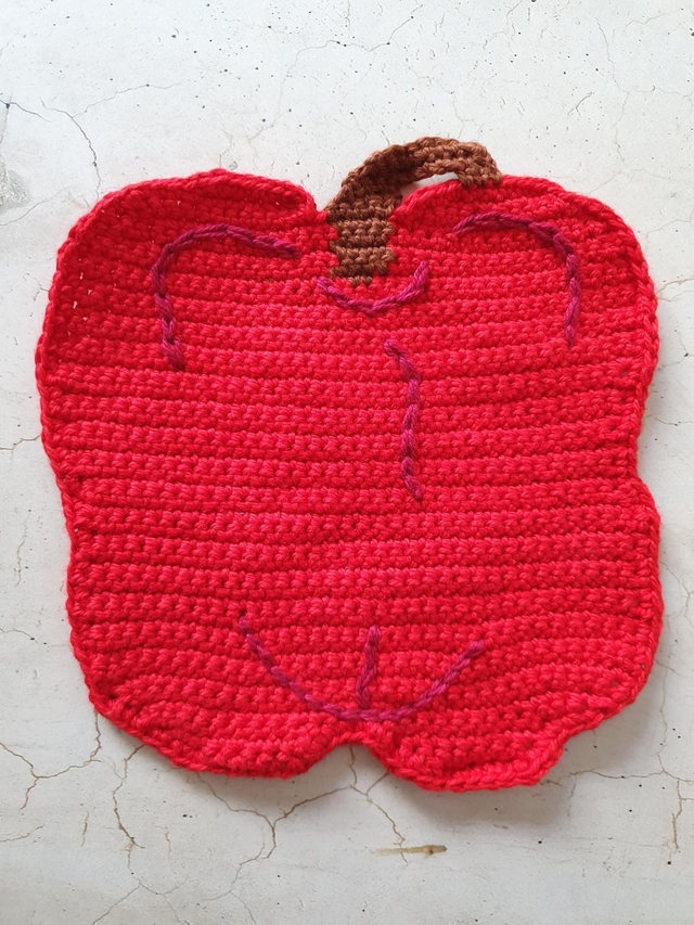 1 Topflappen in grün, 1 Topflappen in rot (20 x 20 cm) und ein Spülschwamm Peperoni, gelb/grün (8 x 13 cm, 2-lagig)