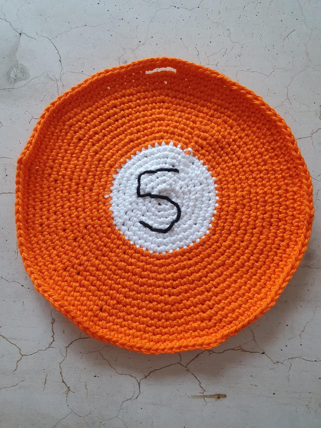 1x Topflappen Billardkugel 5, orange/weiss (Durchm. 20 cm),