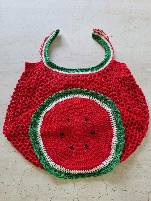 Wassermelone, grün/rot/weiss/schwarz (Tasche Durchm. 25 cm, Netz 25 x 34 cm)