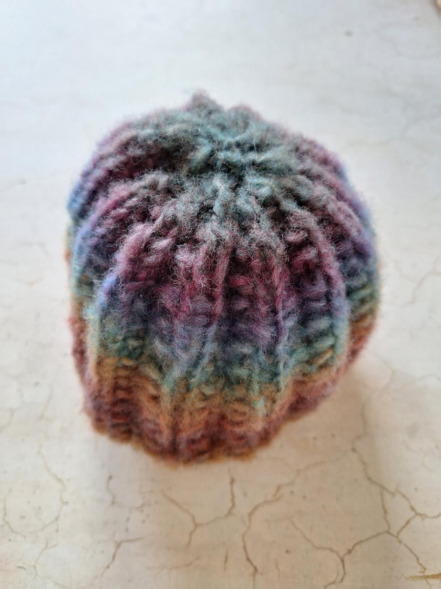Diese Kappe ist ein Unikat und aus der Wolle Orion Superwash, Meriono Extrafine von Lang Garn gestrickt (88 % Schurwolle, 12 % Polyamid)
