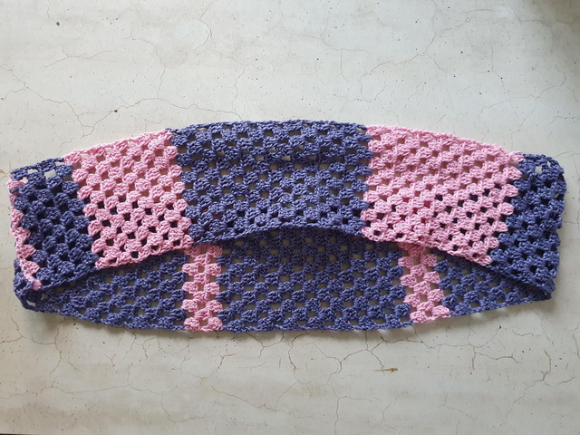 Aus einem Gemisch von 55 % Baumwolle/ 35 % Modal/ 10 % Viskose/ 70 % Schurwolle gehäkelt.