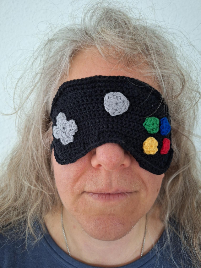 Diese Schlafmaske ist ein Unikat und gehäkelt aus der Catania von Schachenmayr, 100 Baumwolle.
