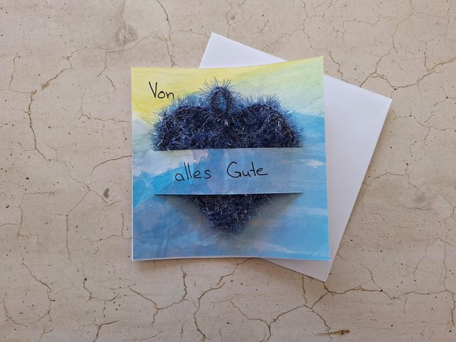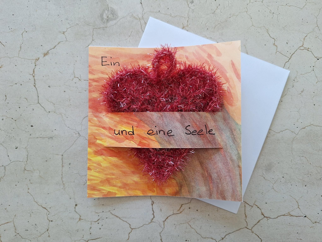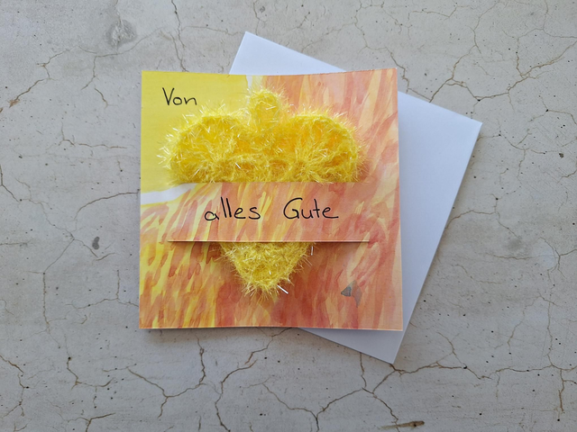 Herz, rot oder gelb "Von Herzen alles Gute" (bitte bei der Bestellung angeben, welche Herzfarbe du möchtest)