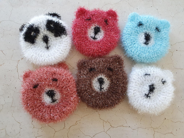 Jeder Schwamm ist ein Unikat und aus Bubble Garn, 100 % Polyester gehäkelt.