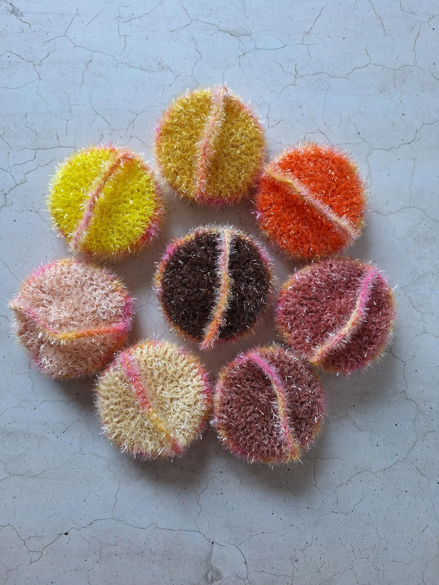 Peeling- oder Spül-Schwamm Bausch, diverse Farben (Durchm. 10 cm, 2-lagig), Eigenkreation Ein Schwamm für alle Fälle: Auf einer Seite hat er eine Schlaufe, wo man bequem mit der ganzen Hand hindurch schlüpfen kann. Dadurch kann der Schwamm super für die Gesichts-, Ganzkörperpflege oder für den Abwasch in der Küche benutzt werden. Jeder Schwamm ist ein Unikat und aus Bubble Garn, 100 % Polyester, gehäkelt. wieder verwendbar, reduziert Abfall, weil bis zu 60 Grad waschbar