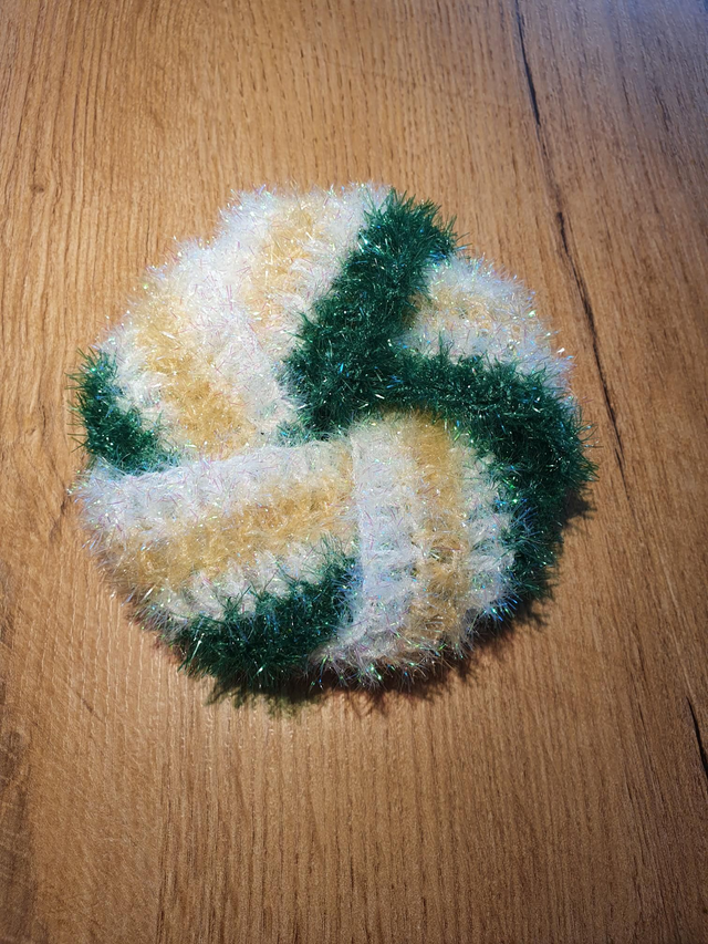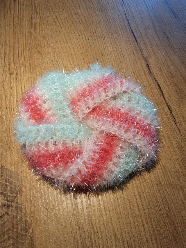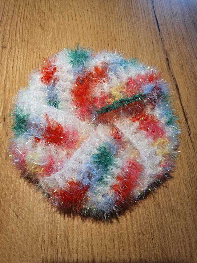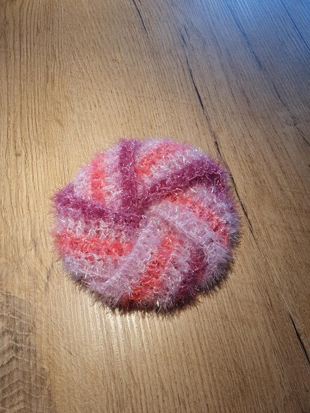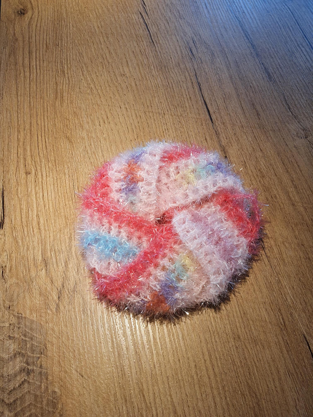 Jeder Schwamm ist ein Unikat und aus Bubble Garn, 100 % Polyester, gehäkelt.