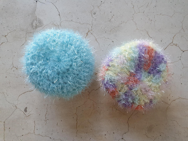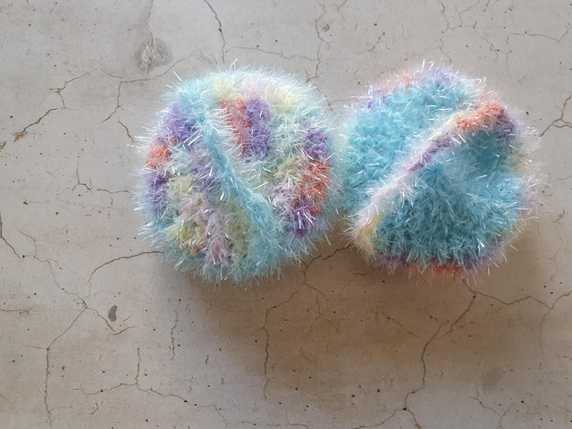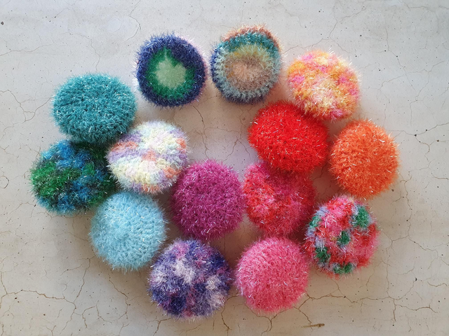 Jeder Schwamm ist ein Unikat und aus Bubble Garn, 100 % Polyester gehäkelt.