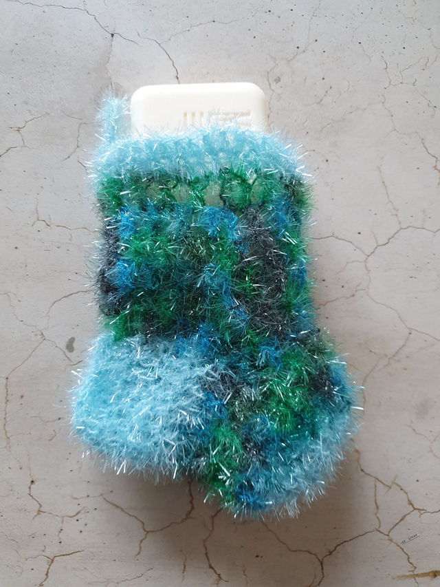 Dieser Schwamm habe ich selbst entworfen und ist ideal für Seifen hinein zu tun. Damit kannst du dich nun gut waschen, weil es handliche ist.