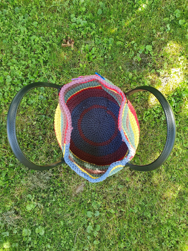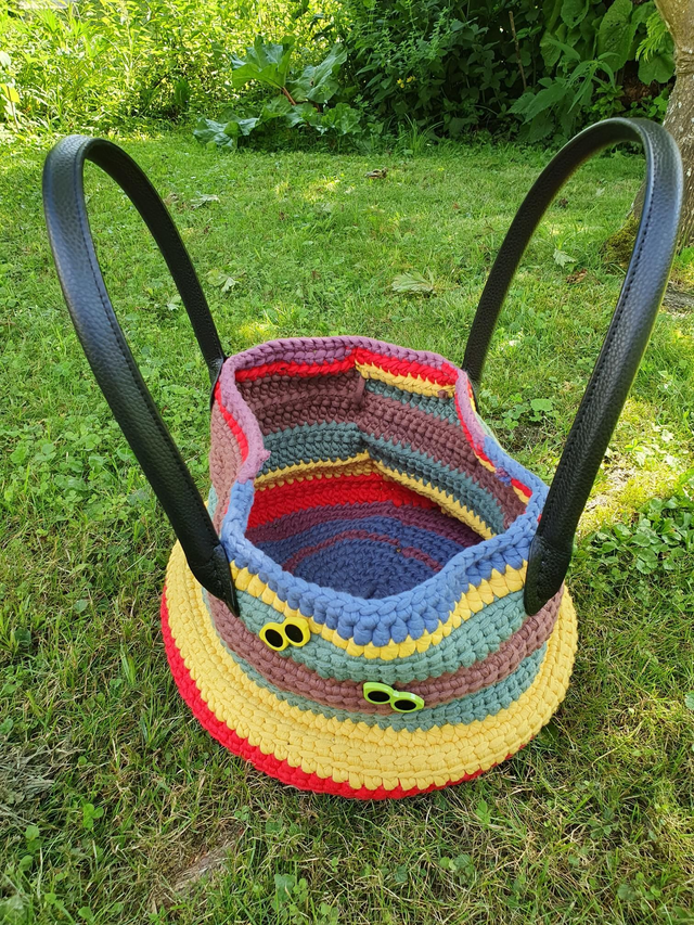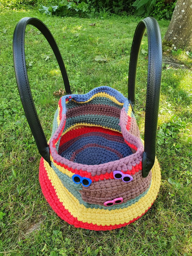 Dadurch, dass die Taschenwand mit verbundenen Doppelstäbchen gehäkelt wurde, ist sie sehr kompakt.