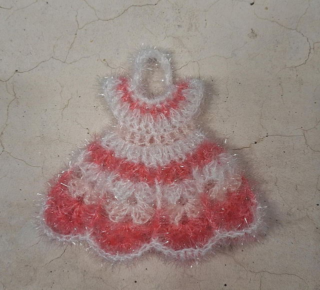 Kleid, dunkelrot/weiss mit Glitzer/rosa